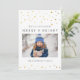 Hermosas estrellas de oro diseño de Merry & Bright, con fotos en la parte delantera y fotos en la parte trasera de la tarjeta. Fácilmente personalizar con nombres, foto y año delante y nombres y foto al dorso de la tarjeta. Trae la temporada con buenos deseos para la temporada de vacaciones.