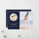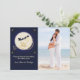 Un fondo azul de medianoche muestra la silueta del trineo y reno de Santa en plena luna blanca. "Feliz Navidad" está preimpreso en oro. Solo agrega tu foto favorita para que sea tuya.