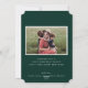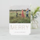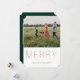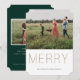 Moderna y elegante "MERRY" dorada, tarjeta fotográfica de vacaciones. La tarjeta incluye una foto en la parte delantera y trasera y varias líneas para el mensaje, los nombres y el año de su personalizado. Se puede personalizar el color de embalaje, mostrado en verde esmeralda.