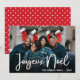 Esta preciosa tarjeta de foto con tu foto, las palabras "Joyeux Noel", con un moderno tipo de letra de guión en blanco y tu nombre familiar y el año con un tipo de letra crujiente en blanco en la parte delantera y un punto de polka blanco y rojo que coordina de vuelta traerán una sonrisa a la cara de cada destinatario. A todos les agradará tener una nueva foto de ustedes y de su familia o de sus hijos. Para hacer de esta tarjeta su propia, simplemente seleccione Personalizar esta plantilla, subir una foto favorita, añadir su apellido y el año. ¡Es muy fácil!