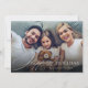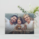 El diseño de la tarjeta de vacaciones felices minimalista moderna presenta una elegante escritura y tipografía de moda, vacaciones más felices, con foto familiar personalizada, tarjetas de felicitación simples y únicas.