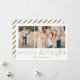 Envíe Navidades a su familia y amigos con esta moderna tarjeta de vacaciones. Dos fotos en la parte delantera, acompañadas de una elegante caligrafía de oro, y un patrón de rayas acuáticas en la parte posterior. El estilo moderno y minimalista hará que las fotos familiares brillen.