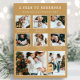 Tarjeta de vacaciones moderna de Collage de fotos de oro. Eleva tus sentidos sentimientos con nuestra moda 'Un año para recordar' tarjeta de festividad fotográfica personalizada. Este elegante keepsake, con un tipo de letra de máquina de escribir vintage y un espacio para 8 fotos familiares, es la combinación perfecta de nostalgia y estilo. El texto blanco sobre un fondo dorado amplifica su atractivo visual. ¡Personaliza y convierte tus recuerdos en atemporales!