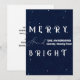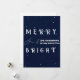 Difunde alegría navideña con esta tarjeta de Navidad moderna sin foto, Merry & Bright, de fondo azul marino. Con un elegante fondo azul marino y tipografía elegante en blanco vibrante y acentos dorados, esta tarjeta aporta un toque contemporáneo a tus saludos de temporada. El audaz mensaje "Merry & Bright" destaca hermosamente, lo que la convierte en una opción sofisticada y festiva para tu correspondencia navideña.