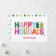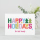 Colores no tradicionales combinados con un tipo divertido dan a esta tarjeta de vacaciones vibraciones retro.