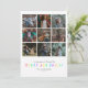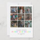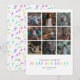 Comparte tus fotos favoritas del año pasado con esta tarjeta de vacaciones moderna y brillante. Cuenta con una cuadrícula con espacios para nueve fotos diferentes. La parte posterior de la tarjeta tiene un divertido patrón de luces de Navidades ilustradas.