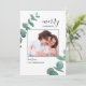 Envíe saludos navideños a la familia y amigos con este elegante Navidad / tarjeta de vacaciones. Está decorado con hojas de eucalipto de acuarela y tipografía moderna. Personalízalo con tu propia foto, mensaje y nombre. Acuarela original © Michele Davies.