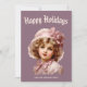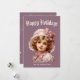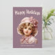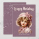 Festiva Tarjeta de vacaciones nostálgica de niña en rosa