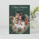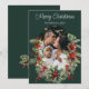 Tarjeta navideña para Navidades de fotografía de arca verde Holly Tarjeta navideña para Navidades elegante con una foto en un arco decorado con árboles huecos. Decorada con el tradicional mensaje "Navidades felices" en blanco en un tranquilo fondo verde musgo. Añade tu propia foto familiar.