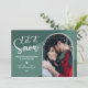 Elegante tarjeta de vacaciones de navidades verdes con tu foto en forma de globo de nieve, con un efecto de nieve en invierno, el dicho festivo "déjalo nevar", saludo de temporada, tu nombre y el año.