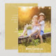 Un patrón de filigree dorado en vieiras en una textura de lino resalta tu foto favorita en estas tarjetas de fotos navideñas. Su mensaje personal y nombres en la parte de atrás.