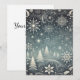 Captura la magia de la temporada con esta encantadora tarjeta de vacaciones con un bosque sereno y nevado bajo un cielo estrellado nocturno, adornado con torbellinos de nieve y delicados acentos florales. Los elegantes tonos azules y marfil suaves evocan la elegancia eterna, perfecta para compartir tus deseos más cálidos. Esta tarjeta es un personalizable en la parte posterior utilizando nuestra herramienta de diseño fácil de usar, que le permite añadir su mensaje personal o saludar para un toque verdaderamente único. Perfecto para enviar alegría de vacaciones con sofisticación y encanto!