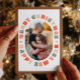 ¡Feliz Navidad y Feliz Año Nuevo! Una divertida tarjeta fotográfica oval con tipografía moderna en una paleta festiva y colorida.