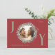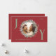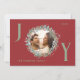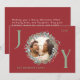 Envíe sus cálidos deseos de vacaciones con esta elegante tarjeta de Navidades de Alegría con un fondo rojo fresco y un follaje festivo verde y rojo enmarcando la foto de su familia. Las letras "J" e "Y" están escritas en verde sabio, añadiendo un toque alegre al diseño. La "O" alberga la foto de la familia dentro de la corona. La tarjeta está en personalizable con los detalles de tu familia e incluye el mensaje perfecto de los Navidades dentro, lo que hace que sea una manera cuidadosa y personal de celebrar la temporada.