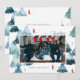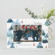 Una elegante tarjeta de vacaciones de una sola foto presenta ilustraciones acuáticos originales de bosque invernal.
