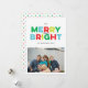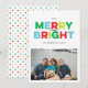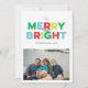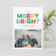 Esta tarjeta de fotos plana de las vacaciones de Merry y Bright con estilo vintage, textural con colores coloridos y brillantes de rojo, verde, citrón y cian, difunde alegría navideña moderna con tu fotografía de paisaje favorita. Personalice fácilmente el texto negro y agregue un mensaje más largo de noticias de vacaciones al interior o borre el texto de la plantilla para una tarjeta limpia y simple que pueda escribir a mano un mensaje dentro.
