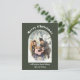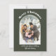 Muestra tu foto favorita con estas tarjetas de vacaciones planas simples y fáciles de personalizar. Su foto vertical o orientada a retratos aparece en una forma de arco atractiva con su titular encima en letras blancas y sus nombres u otro texto personalizado debajo en letras blancas coincidentes. El texto y la foto se colocan sobre un fondo de color verde oliva oscuro.