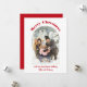 Muestra tu foto favorita con estas tarjetas de vacaciones planas simples y fáciles de personalizar. Su foto vertical o orientada a retratos aparece en una forma de arco atractiva con el título superior en letras rojas en negrita y sus nombres u otro texto personalizado debajo en letras de guiones rojos coincidentes.