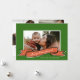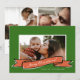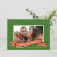 Cinta roja dibujada a mano con personalizable de guión. A lo largo del texto Feliz Navidad. El rojo y el verde crean una combinación clásica de colores de vacaciones. Añade tu foto favorita al frente y dos más al revés con un mensaje personalizado de fin de año.