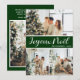 Esta fabulosa tarjeta festividad de 4 fotos con "Joyeux Noel!" en un alfabeto moderno y su nombre familiar y año en un fresco y fresco tipo de letra tradicional, tanto en blanco sobre verde oscuro en la parte delantera como una foto y un mensaje de vacaciones de personalizable en la parte trasera es perfecto para enviarlo a su familia y amigos. ¡A todos les encantará conseguir nuevas fotos de su familia!