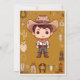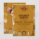 Este diseño de temática cowboy a juego es perfecto para una decoración fiesta o adicional. Muestra a un lindo personaje de vaquero en el centro, vestido con ropa occidental completa, que incluye un gorra, botas y una bandana, que irradia un ambiente divertido y aventurero. Alrededor del personaje hay elementos occidentales como cactus, botas de vaquero, gorras, lassos, cráneos y herraduras, todo ello ordenado sobre un fondo marrón cálido. Este diseño complementa la invitación maravillosamente, creando un tema cohesivo y juguetón de vaqueros. Se puede utilizar como telón de fondo para fotos, decoración fiesta u otros materiales de eventos. Su estilo encantador y amigable para los niños lo convierte en ideal para cualquier celebración con temática de vaquero. 🤠 🎉