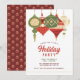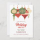 Esta invitación moderna y colorida es perfecta para celebrar un fiesta de vacaciones o Navidades. Cuenta con un ilustracion de adornos navideños de estilo rústico crayón. El diseño, limpio, es sencillo pero festivo y perfecto para la temporada de vacaciones. Esta invitación se puede utilizar para una familia o un fiesta corporativo.