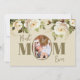 Almohada con foto personalizada de la mejor mamá con rosas blancas de acuarela elegante. Diseño neutro crema / beige. Ideal para regalo del día de la madre. Diseño elegante, sofisticado, simple, boho country, foto, una imagen, feliz día de la madre.
