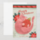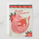 Carta de Navidades con una vibra retro con un ilustracion de un gato rosado jugando con una baudible y un texto "Navidades Meowy". Perfecto para los amantes del gato. Personalizar esta tarjeta con tu nombre. Obra original de Marketa Stengl.