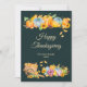 Una hermosa calabaza rústica llana tarjeta de Acción de Gracias. Este bonito diseño cuenta con un tipo de letra de guión, calabazas, hojas caídas, con un fondo verde oscuro. Personaliza con tus propios detalles. Artículos coincidentes disponibles en nuestra tienda. #zazzlemade