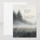 Una sencilla y suave acuarela con nevada en el bosque, una suave niebla y pinos perennes, con un simple verso de paz.
