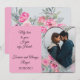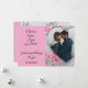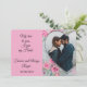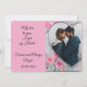 El corte en forma de corazón en el lado derecho de la tarjeta está rodeado de rosas rosas rosas. Personaliza la tarjeta cargando una de tus fotos favoritas usando la plantilla proporcionada. El texto es totalmente personalizable. El lado inverso de la tarjeta es un patrón de rosas.