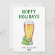 Vidrio de cerveza pintado y cúmulo de lúpulos, graciosa tarjeta "Hoppy Holidays".