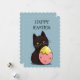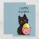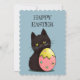 Adorable gato negro con una tarjeta de vacaciones llana de huevo de Pascua.