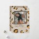 Una tarjeta de vacaciones de leopardo impreso para esa divertida familia que ama vivir la vida en el lado salvaje. Lugares de leopardo juguetón enmarcan la foto de tu familia y hay espacio en la parte de atrás para otra foto y una nota de la familia.