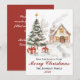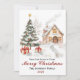 Una hermosa tarjeta acuática de vacaciones con un patio cubierto de nieve y un árbol de Navidad al aire libre con regalos debajo y una encantadora casa a la antigua a lo lejos que crea una hermosa escena nostálgica. Personaliza tu tarjeta con el nombre de tu familia y el año en la parte delantera y un mensaje personal en la parte trasera o guarda el que se muestra. Los nombres también se pueden imprimir en la parte posterior.