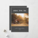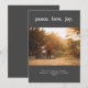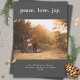 Paz. Amor. Joy Simple Minimal Photo Template Holiday Card. Texto listo para el personalizar con los nombres y la fecha deseados. Plantilla de fotos lista. Fondo gris oscuro. Los colores se pueden personalizar para que coincidan con la foto.