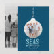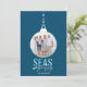 Envíe Mares y Saludos a la familia y amigos esta temporada de vacaciones. Este saludo costero incluye una foto y un ancla sobre un fondo azul marino.