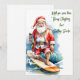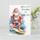 Festiva Tarjeta de vacaciones plana Surfing Santa