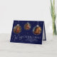Deleita a tu familia y amigos con esta hermosa tarjeta plegada. Esta tarjeta presenta tres aberturas rodeadas de bordes de purpurina plateada con la apariencia de estar suspendidas en un hilo de diamantes brillantes, terminadas con un pequeño lazo, están diseñadas para parecer que tus fotos favoritas están dentro de un adorno festivo. Todo esto descansa sobre un fondo azul marino espolvoreado con copos de nieve de purpurina. El texto de color plateado en la parte frontal y el texto azul marino dentro de la tarjeta son totalmente personalizables, y se pueden cambiar y eliminar según tus necesidades.