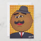Tarjeta de vacaciones QUICKDRAW con Mr. Waffles, el encantador personaje de dibujos animados con un sombrero fedora, bigote y traje. Una tarjeta de vacaciones audaz y colorida que destaca en cualquier buzón. Perfecta para difundir alegría navideña con un toque artístico único.