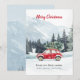 Envíe cálidos deseos de vacaciones con esta tarjeta personalizada de Navidades que incluye un auto rojo festivo que lleva un árbol de Navidad a través de montañas nevadas. Esta tarjeta de saludo de vacaciones personalizado le permite añadir su apellido y saludos para un toque personal. Impreso en papel premium con colores ricos, es la manera perfecta de compartir la alegría de las vacaciones con sus seres queridos. Cree un conservador duradero con esta encantadora tarjeta personalizada de Navidades familiares.