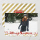 Tarjeta navideña de festividad de oro Red Merry Christmas Splat Photo.