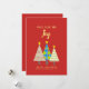 Envía alegría festiva con esta moderna tarjeta de Navidades que incluye un trío de brillantes árboles navideños en un atrevido fondo rojo. El frente dice "Paz, Amor y Alegría" en un alegre tipo de letra dorada, con espacio para personalizar el nombre de la familia y el año siguiente. Una elección perfecta para las familias que desean una manera elegante y sincera de enviar sus cálidos deseos esta temporada de vacaciones. Ya sea mandando correos a amigos, vecinos o compañeros de trabajo, este diseño único destaca con color y personalidad. Personalizable completo: cambie el texto, las fuentes y el mensaje interior para convertirlo en el suyo propio.