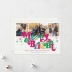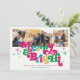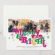 Estas adorables tarjetas de felicitación para festividades fotográficas de 7" x 5" presentan el brillante y colorido saludo retro, "Merry & Bright", en magenta, verde, amarillo y azul con marcadores de posición para tres de tus fotos favoritas.