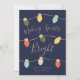 Diseño moderno de tarjetas de vacaciones luminosas y coloridas con un ilustracion de luces de Navidades retro que también puede ser personalizado con tu foto y texto.