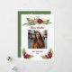 Rosas borgoña y bayas de acebo rodean maravillosamente su foto en la parte frontal de la tarjeta. El tema continúa en la parte posterior donde puede editar el texto para personalizar su mensaje.