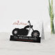 Tarjeta de vacaciones Santa Motorcycle y Snowflakes. Una tarjeta de felicitación de festividad de motocicleta muy bien personalizada, esta tarjeta incluye una motocicleta con copos de nieve para los radios, un fondo de damasco, y santa encima del texto que dice feliz feriado! Una tarjeta divertida y divertida para mostrar tu singularidad a tus amigos. Esta tarjeta de felicitación de vacaciones de Motociclismo es excelente para los aficionados a la moto o al ciclismo!