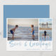 Celebra la temporada con un toque de magia costera con esta tarjeta de hospedaje "Seas and Greetings" (Mares y saludos) de la familia costera mientras muestras tres de tus fotos familiares más apreciadas en el telón de fondo de la costa. Esta tarjeta es un verdadero reflejo de tu amor por la playa y la calidez de tu lazo familiar, creando un saludo de vacaciones único que seguro destacará.
