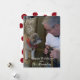 Un diseño divertido y festivo con una sola foto en la parte delantera y puntos rojos en el fondo blanco en la parte posterior. La foto cubre toda la parte delantera de la tarjeta. La tipografía blanca está en la parte inferior de la tarjeta que muestra tu mensaje de vacaciones. Un aspecto moderno para tus tarjetas de felicitación de vacaciones. Puede cambiar el color del tipo de letra utilizando la opción de edición de diseño de la página del producto.