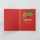 Tarjeta de vacaciones de trineos personalizables con borde purpurina dorado, fondo rojo y "Sonido de campanas de Sleigh, ¿estás escuchando?" versículo.